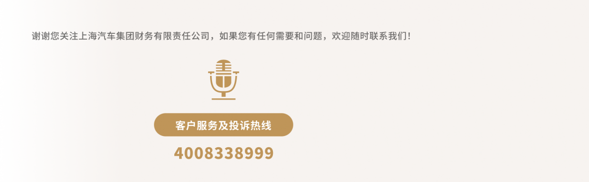 謝謝您關注上海汽車集團財務有限責任公司,如果您有任何需要和問題,歡迎隨時聯系我們!